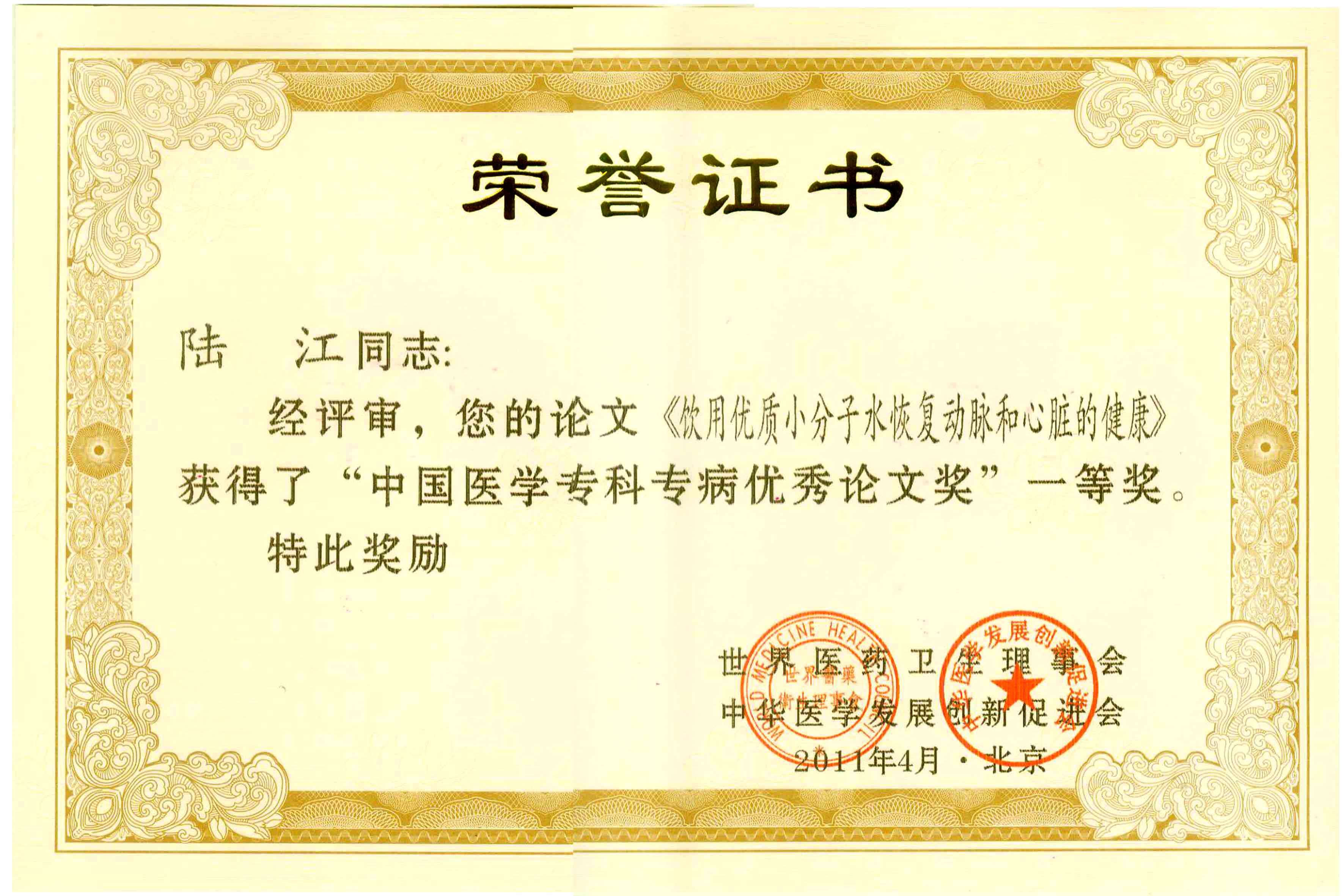 -----我是從事建筑的高工,本來沒有資格去攻克醫(yī)學難題,卻為了自身健康才扣響醫(yī)學的大門。由于我1990年患高血壓,因怕中風才研究發(fā)明了離子水瓶,我把水處理成微小分子團水,飲用后治愈了高血壓。便于1993年底送到三家省級醫(yī)院做臨床試用4個月。經(jīng)北京和廣西醫(yī)學專家鑒定:"降脂降壓效果好"," 能擴大心腦動脈流量,改善心腦電圖以及微循環(huán)","對治療心腦動脈粥樣硬化、高血壓、高血脂有良好的醫(yī)療保健作用。""產(chǎn)品的技術(shù)性能和療效達到了同類產(chǎn)品的國內(nèi)領(lǐng)先水平,經(jīng)廣西醫(yī)學科學情報研究所檢索,未見國外有類似報道。"中國醫(yī)學科學院張正國教授從美國國立醫(yī)學圖書館數(shù)據(jù)庫存Medline檢索英俄文資料,均未見類似報告。2000年上市后,我為了對消費者負責而繼續(xù)觀察研究,一直通過《信譽卡》和《質(zhì)量跟蹤調(diào)查書》向患者承諾療效,請用戶使用6個月后反饋效果。和脂壓患者飲用2至5個月內(nèi),消除癥狀,停服藥物,血壓正常;冠心病患者飲用3~5個月逐漸減輕至消除心絞痛、房顫等癥狀,不再服藥,飲用1年左右心電圖正常,經(jīng)冠脈造影掃描無明顯狹窄,表明冠心病痊愈。大量患者還反映許多衰弱器官被修復(fù),讓前列腺增生、慢性咽喉炎、慢性氣管炎、支氣管炎、慢性胃炎、腸炎和膽囊炎等不藥而愈;2型糖尿病患者是因為胰島衰弱致病,飲用該水半年至一年,逐漸減藥至停藥,血糖尿糖正常,真正治愈2型糖尿病。中風后遺癥患者飲用六七個月,可逐漸減輕至消除肢體和語言障礙,表明飲用該水能讓壽命很長的神經(jīng)元細胞逐漸修復(fù),奇跡般地恢復(fù)肢體和語言功能。飲用后還使胸腺和脾臟兩個重要的免疫器官被修復(fù)和增強,產(chǎn)生免疫細胞多,提高了免疫力,使人不生病或少生病。自此, 飲用微小分子團水創(chuàng)造了攻克冠心病、高(低)血壓和糖尿病三大醫(yī)學難題的奇跡。人們對此感到不可思議,但實踐是檢驗真理的唯一標準。