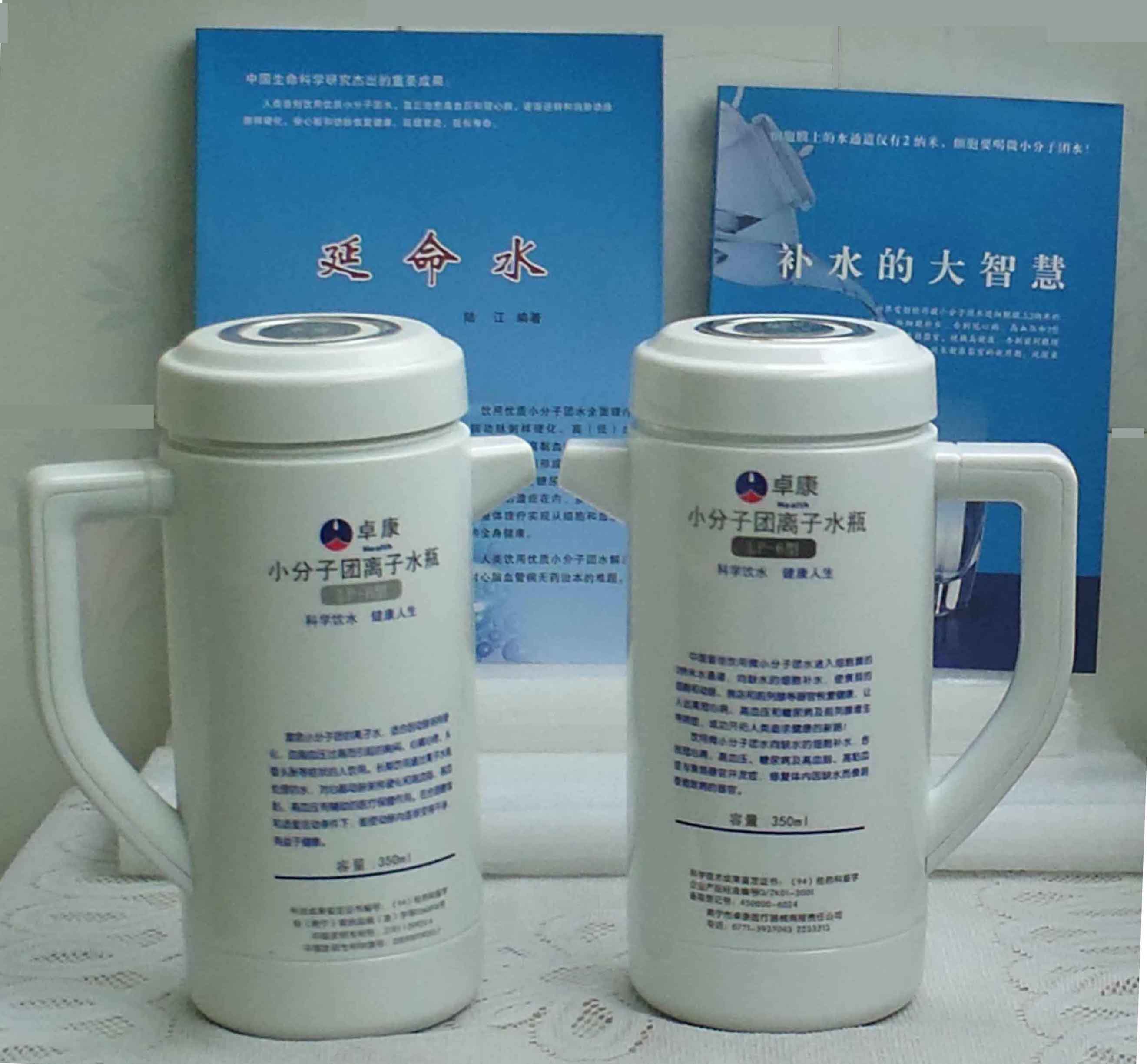 本品大量用戶的使用效果表明,能治愈冠心病、腦動脈硬化、原發(fā)性高(低)血壓、高血脂、高粘血癥、高血尿酸癥(痛風)和2型糖尿病、衰弱器官并發(fā)癥(前列腺增生、腎衰與尿毒癥)及中風后遺癥等療效好。產(chǎn)品配信譽卡。使用壽命30年,不換芯,易清洗。團購優(yōu)惠。從郵局匯款,匯費1%,地址按本頁下方地址、聯(lián)系人寫。從銀行匯款,請點擊[聯(lián)系匯款]欄,從工商銀行匯款,建設(shè)銀行、農(nóng)業(yè)銀行匯款,均免收匯費,匯款后20--30分鐘內(nèi)發(fā)短信,可用微信轉(zhuǎn)帳,均免匯費,微信號即手機號13768308380。匯款后,告知你的姓名和地址,我公司聯(lián)系人手機號是:13768308380。卓康牌離子水瓶為我公司獨家生產(chǎn),郵購產(chǎn)品配《補水的大智慧》彩印書一本,另配四季出版社出版的新書《補水的大智慧》一本,并配光盤一張(含央視主持人釆訪陸江的對話視頻)。目前市場和"淘寶網(wǎng)"上有人兜售假冒的偽品,望讀者審察辯別真?zhèn)?,造假者剽竊假冒本公司的各種認證、獲獎獎項、專利號和外包裝盒上的中英文字,包括科技成果的鑒定意見等,請讀者注意防偽。如何識別假貨?已經(jīng)買了假貨怎么辦?(請點擊[打假掠影][打假掠影])。
