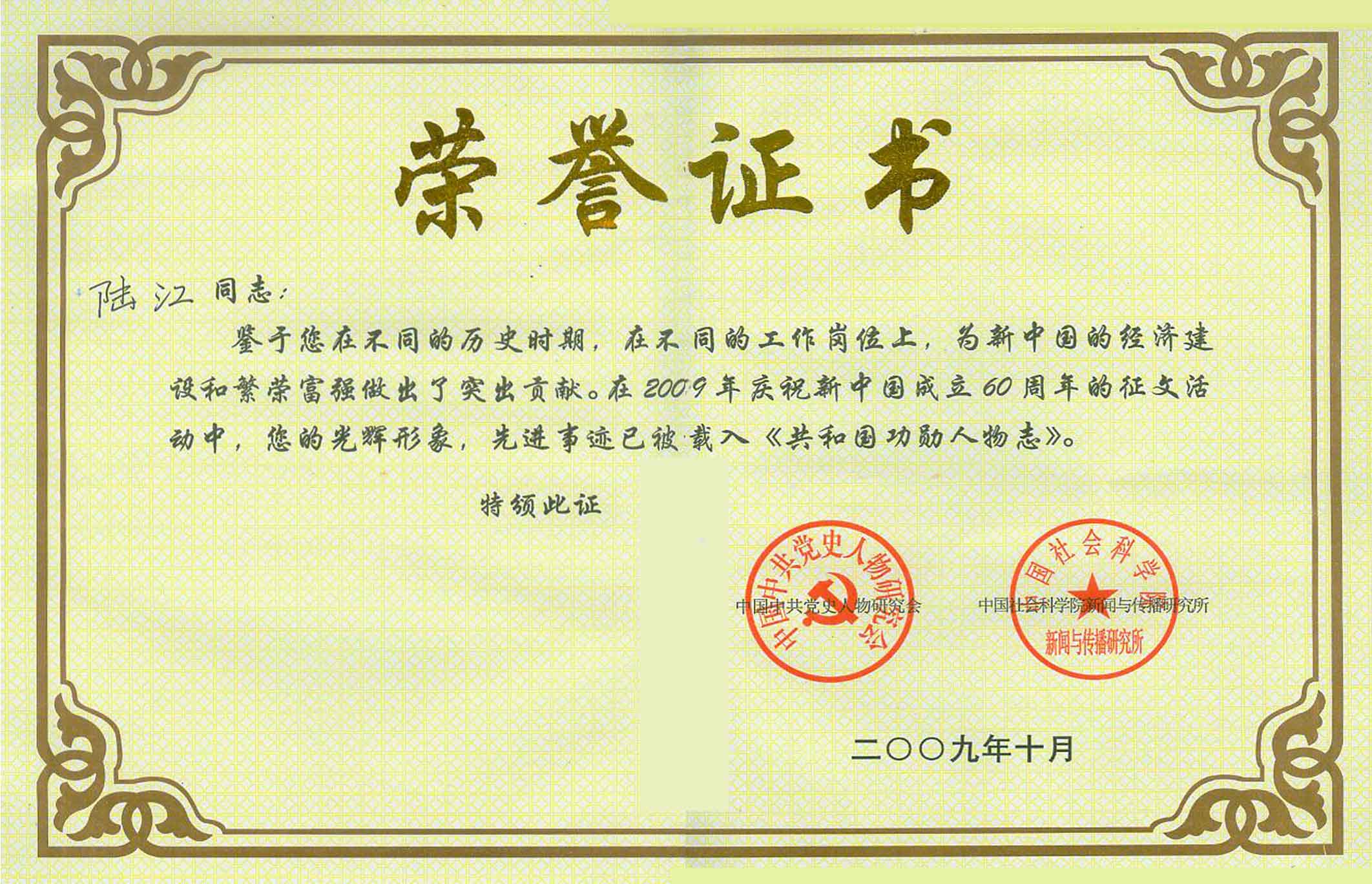 陸江榮獲引領(lǐng)行業(yè)發(fā)展杰出貢獻人物證書 --------卓康公司榮獲全國質(zhì)量、服務(wù)、信譽AAA級品牌證書
