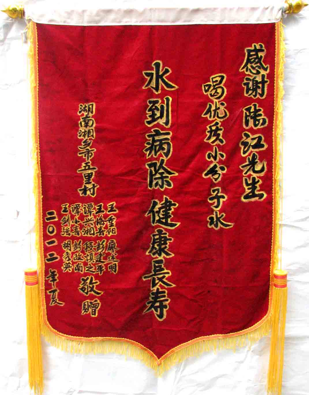 2015年潘志山主動寫一篇感想《我以親身實踐打破了冠心病、高血壓、糖尿病需終生服藥的神話》說:“堅持按發(fā)明人陸?江先生倡導的用‘已饑方食’的方法合理膳食,我的健康狀況越來越好:糖尿病造成的視力下降有了明顯的恢復(fù),末梢神經(jīng)炎導致的指端潰爛現(xiàn)在完全痊愈,痔瘡自從飲用微小分子團水半年后就再也沒有復(fù)發(fā)過,氣滯血瘀造成的嘴唇暗紫也漸漸變得紅潤,舌下靜脈黑紫消失,足背的動脈由以前的隱約感到跳動現(xiàn)在變得清晰有力。”[13]潘先生披露的訣竅,一是飲用微小分子團水給脫水細胞補水,二是“已饑方食”養(yǎng)生智慧,患者都能做到。